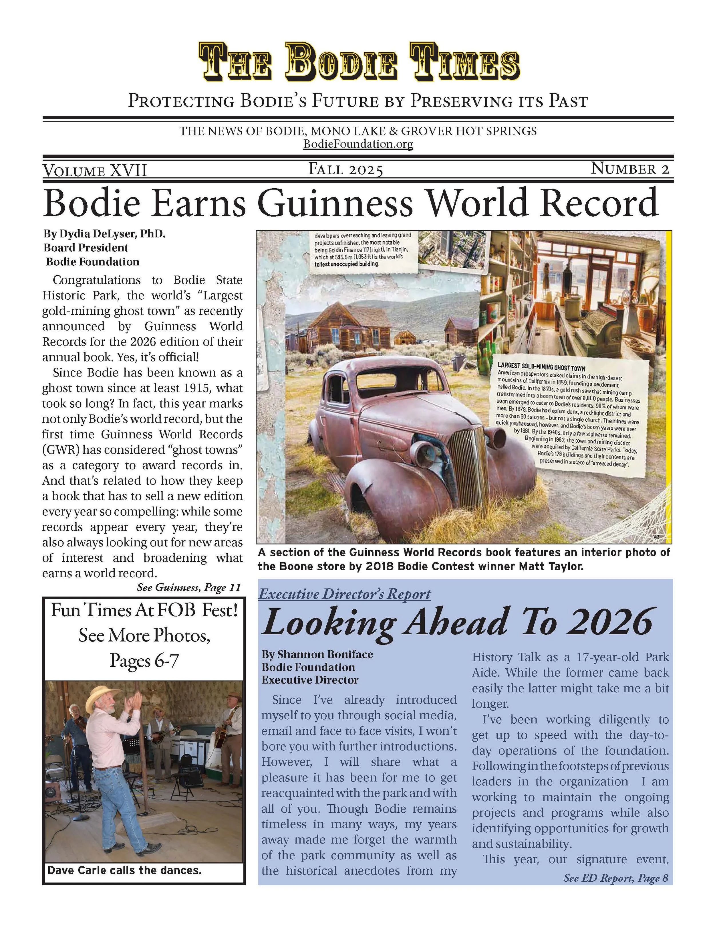 To see our latest newsletter, become a member today! Become a Member The Bodie Times Newsletters Spring 2025 Spring 2024 Spring 2023 Spring 2022 Spring 2021 Spring 2020 Spring 2019 Spring 2018 Fall 2025 Fall 2024 Fall 2023 Fall 2022 Fall 2021 Fall 2020 Fall 2019 Fall 2018 Fall 2017 Spring 2017 Spring 2016 Spring 2014 Spring 2013 Spring 2012 Spring 2011 Fall 2016 Fall 2015 Fall 2013 Fall 2012 Fall 2011 Fall 2010